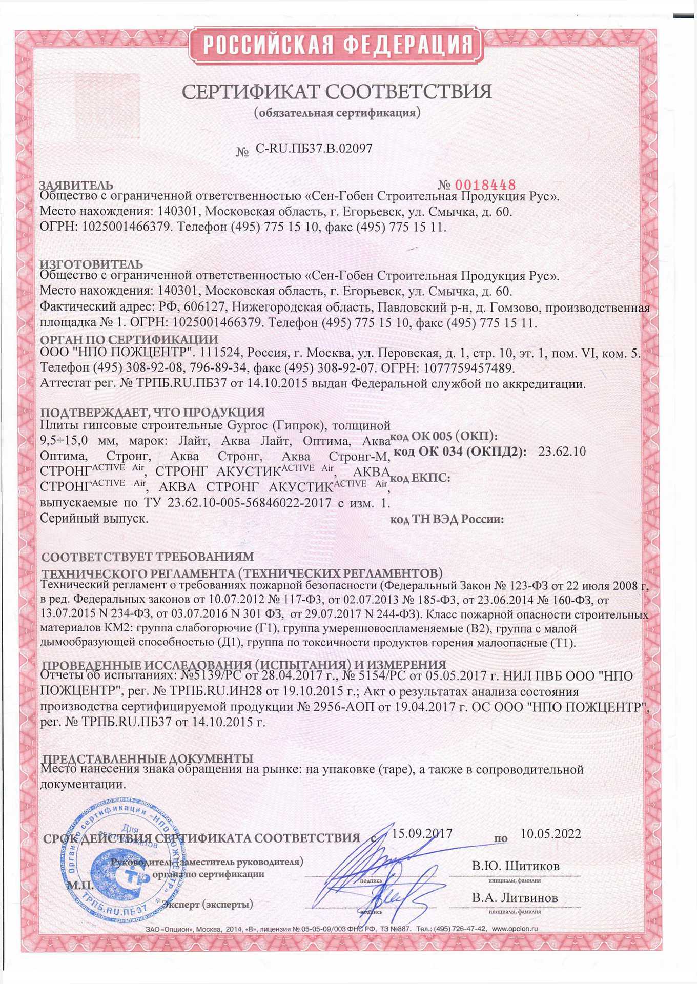 Подтвержденное сертификатами и действующими ГОСТ